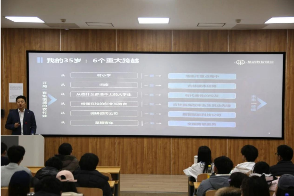 曹良克董事长以自身35岁6次跨越为主线,用“河南乡村——博士——AI创业者”的逆袭故事,为统数学子描绘出一条“先实干、再深耕”的成长通道路径。他结合自身经历,把AI时代的就业、创业机会拆解成可复制的选择逻辑,为学生绘制了一份“听得懂、用得上”的职业导航图。