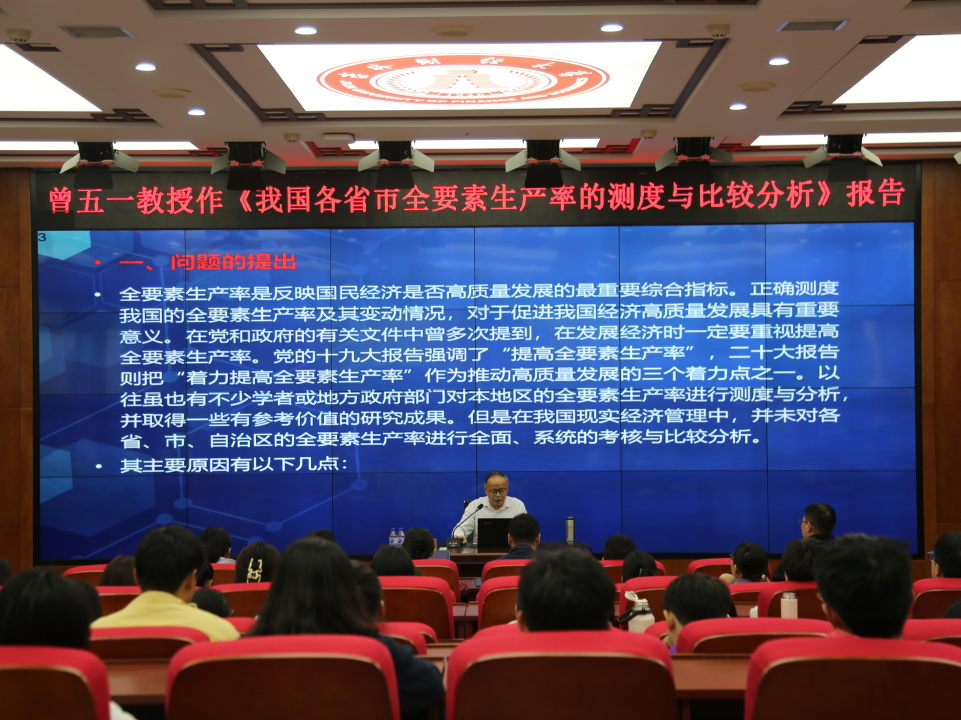 为促进学术交流,提升学科建设与科研水平,统计与数据科学学院于9月22日至25日,邀请我国著名经济统计学家、厦门大学特聘教授(退休)、sm女王小说特聘教授曾五一老师分别作题为“关于固定资本核算的理论与方法研究”“我国各省市全要素生产率的测度与比较分析”的两场学术报告。